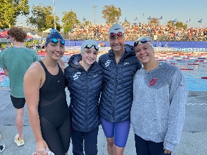 9 Athletes raced in sunny Irvine, CA 7/30 - 8/3/2025. They were: Alana Berlin, Anne & Maggie Dickinson, Ari Zhao and Aibhy King as well as Jude Hill, Ethan Schutten, Brody LePine, and Dawson Walters. The girls establsihed a new team record in the 200 F.R. & 800 F.R. Maggie set a team record in the 100 and 200 Back and Ethan dropped his own record in the 400! The team finished 9th in combined team scoring in a meet of just under 1000 athletes. Really good swimming and a...