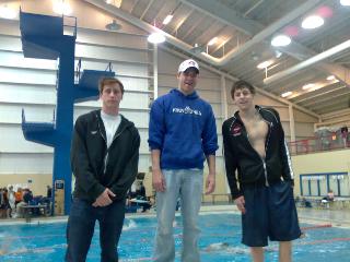 The way it goes is the team has a rough day of travel on Thursday, Friday Prelims are usually rough and then we hit our stride on Saturday. True to form Schroeder enjoyed great swims all night. Mitchell made it to the Shoot Out in the 50 free and led off the session by winning his first round insuring a total of three 50 efforts during the session. Mitchell went his best 20.50 in the first round, in the quarter final he got beat but swam a very nice 20.52 and the in the consolation bracket he went 20.6 to get 4th place overall. Schroeder has placed at least one athlete in the Shoot Out for 12 straight years! Adam rocked an awesome 200 IM winning the event and breaking his own state and tema record in the process. His effort of 1:44.27 was really perfect. Chris Meyers won the C final in both the 200 IM 1:56.6 and the 200 breast 2:09.5. Casey Murphy swam to a best in prelims in the 50 - breaking 22.0 for the first time and then had strong C final recording a 22.0. In the 100 back Mitch snagged 3rd place with a 48.5 and Carl managed a best winning the B final with 52.33. Schroeder's fortunes continued to soar as Alex Meyers gave an Ohio State athlete all she could handle and recorded a best of 5:04.34 and finished 2nd in the C final. Both Schoreder relays swam good times 4:09 for the girls Jaime Kohnke, Alex, Annelise Sprau and the steady Senior Caroline in the anchor spot just missed scoring. The boys were a little tired but grabbed 4th with a respectable but tired 3:30.01. Carl, Chris, Mitch and Casey were onthe relay. Overall the Men are 2nd and the team remains 4th overall. TCU arrived today and will leap horned frog over us tomorrow in combined scoring.