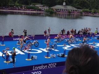 Gwen's London Olympic experience took a disappointing turn with a puncture on the second lap of the bike leg. You may have seen many riders hit the deck on TV as the roads were wet and slick but Gwen's troubles were run of the mill flat tire. It took about 1 and a half minutes to get to a tire replacement stop and get a new wheel on the bike. By that time, Gwen's spot in the second pack was lost and she was relegated to completing the bike segment in a third pack effectively eliminating any chances for a good finish. After the race she was sad but already talking about returning to racing later this summer and finishing out the ITU series in New Zealand in October. All in all a miraculous run and an amazing rise to Olympic - level sport.