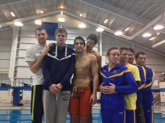 200 Back: Khia bettered her prelim effort with a 2:08, as were the guys: Chandler to 1:56.1, Nick to 1:48.6, Adam, 1:45.5 and Ellis won at 1:42.9 which should be good enough to make the NCAA meet.