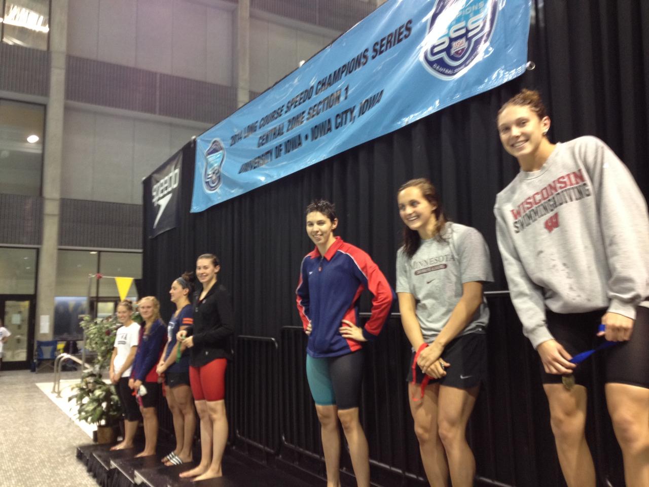 Carolyn Jungers swam in the D final of the 100 M breast and Gwen won the B final - both good swims!