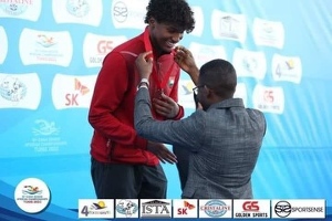 Ziyad Saleem won the first Gold Medal for Sudan at an African Championships. The competition is in Angola and the water is very warm at 89 degrees. Ziyad has the 50 and 100 back events remaining.