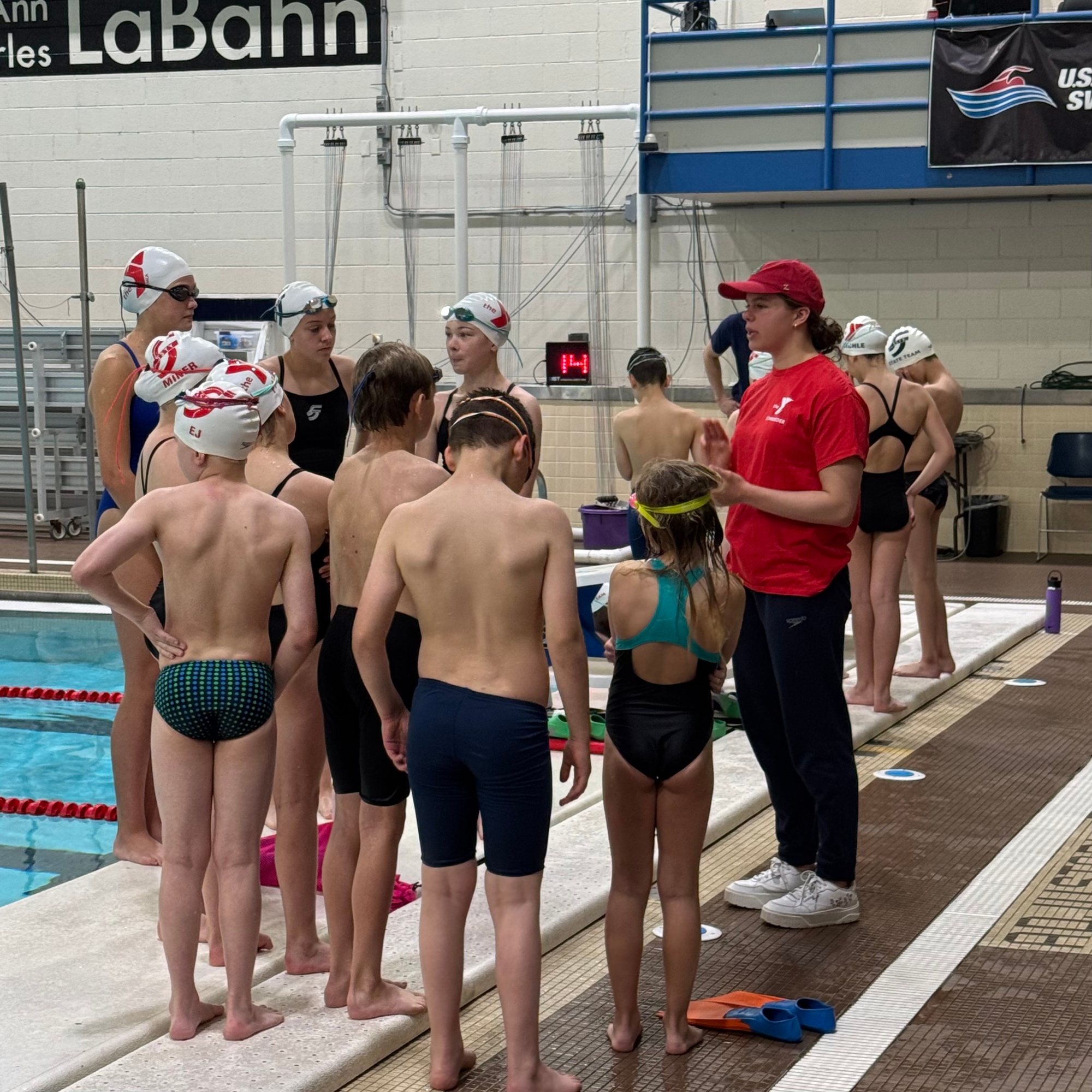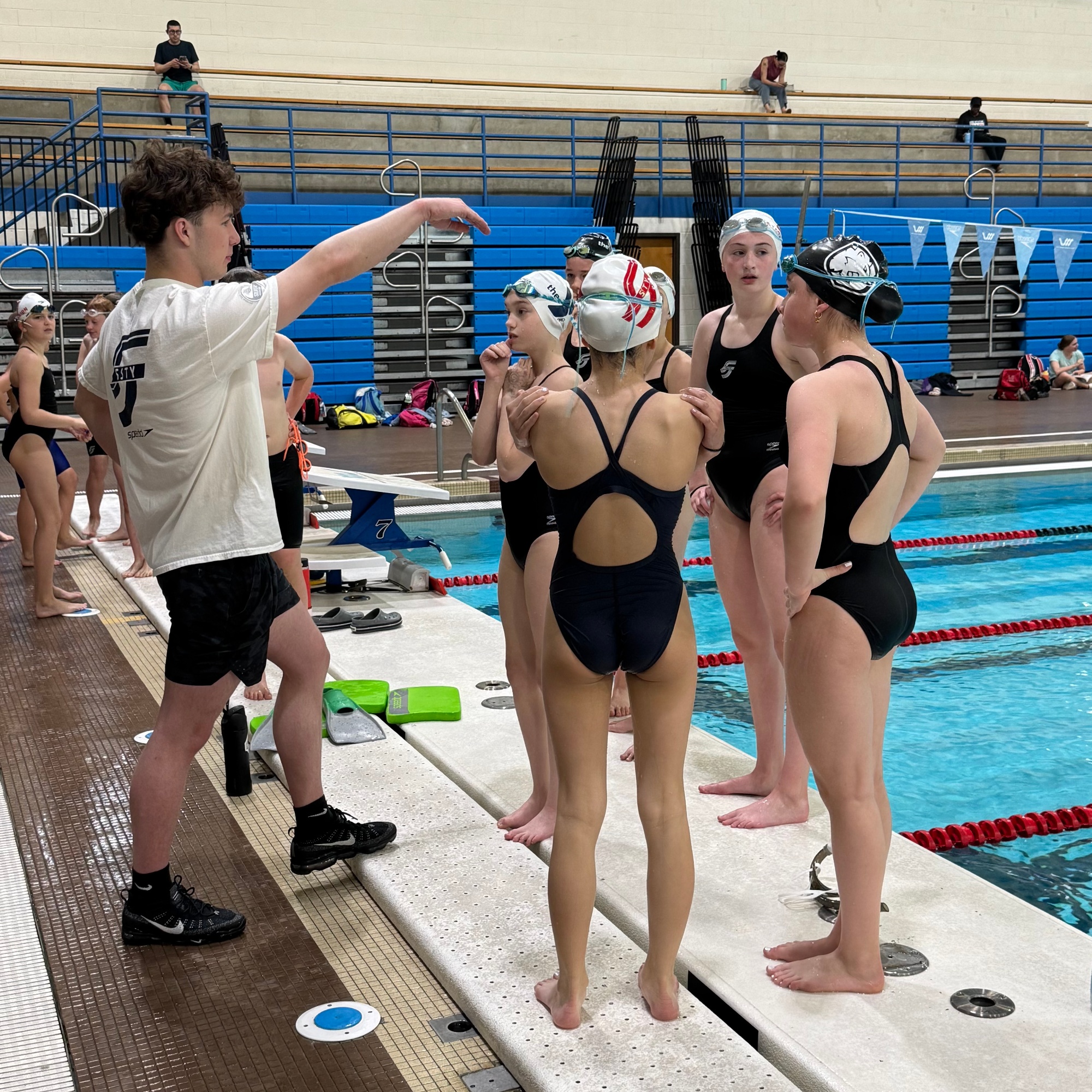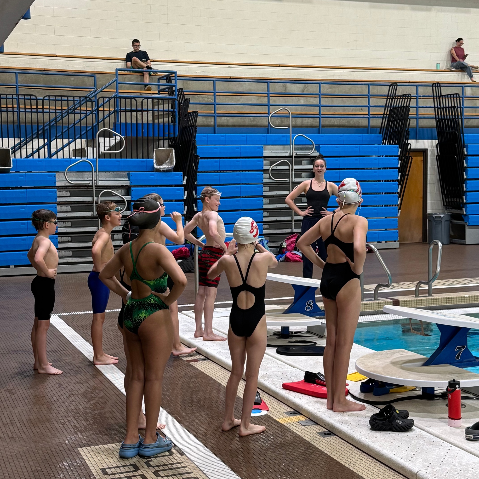 Alana ran an underwater kick station, Maggie ran a Battle Behind the Blocks/Team Cheer, Ethan ran turns and Sam ran starts!
