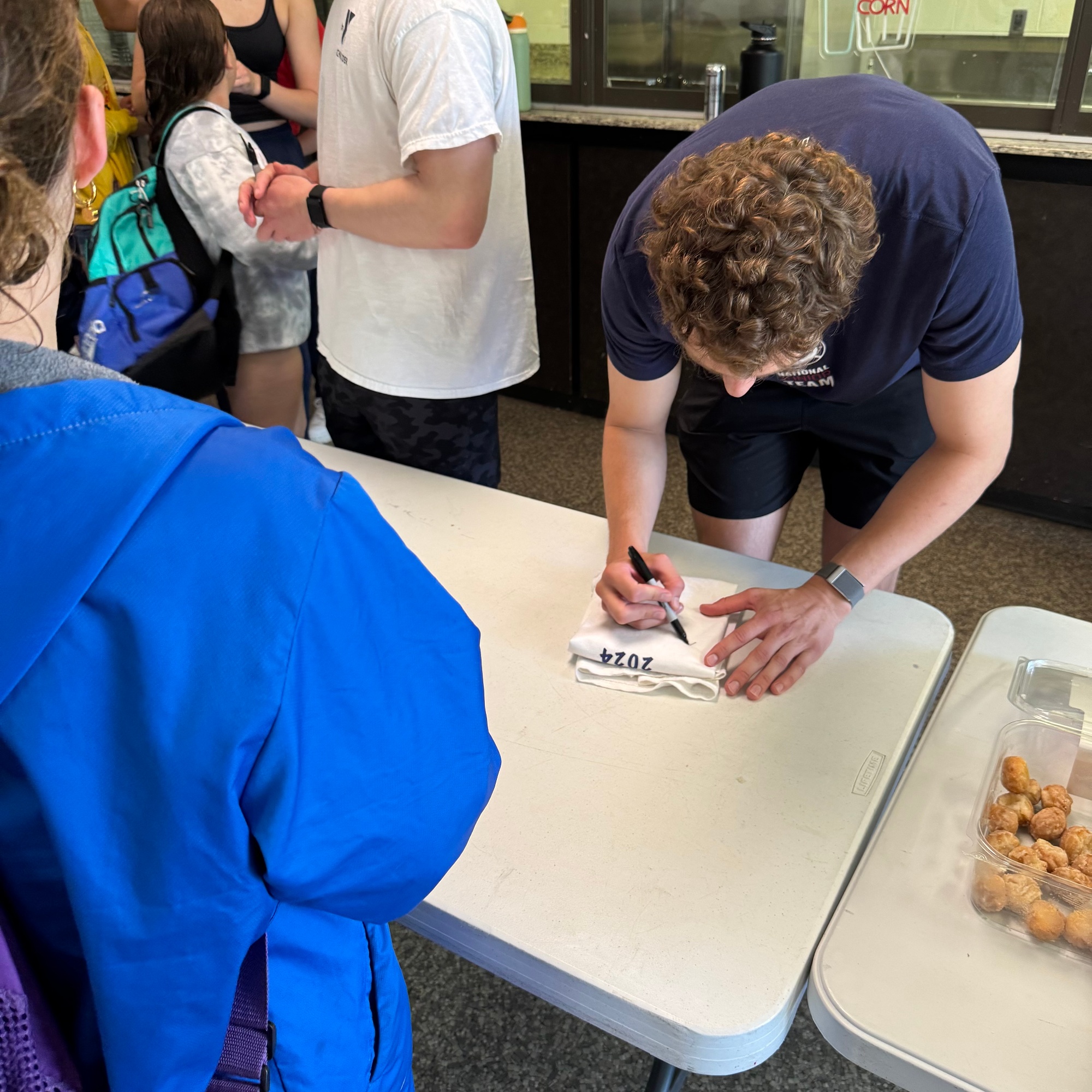 After the session ended, doughnuts were had and many athletes got caps/bags/water bottles signed by the four athletes!