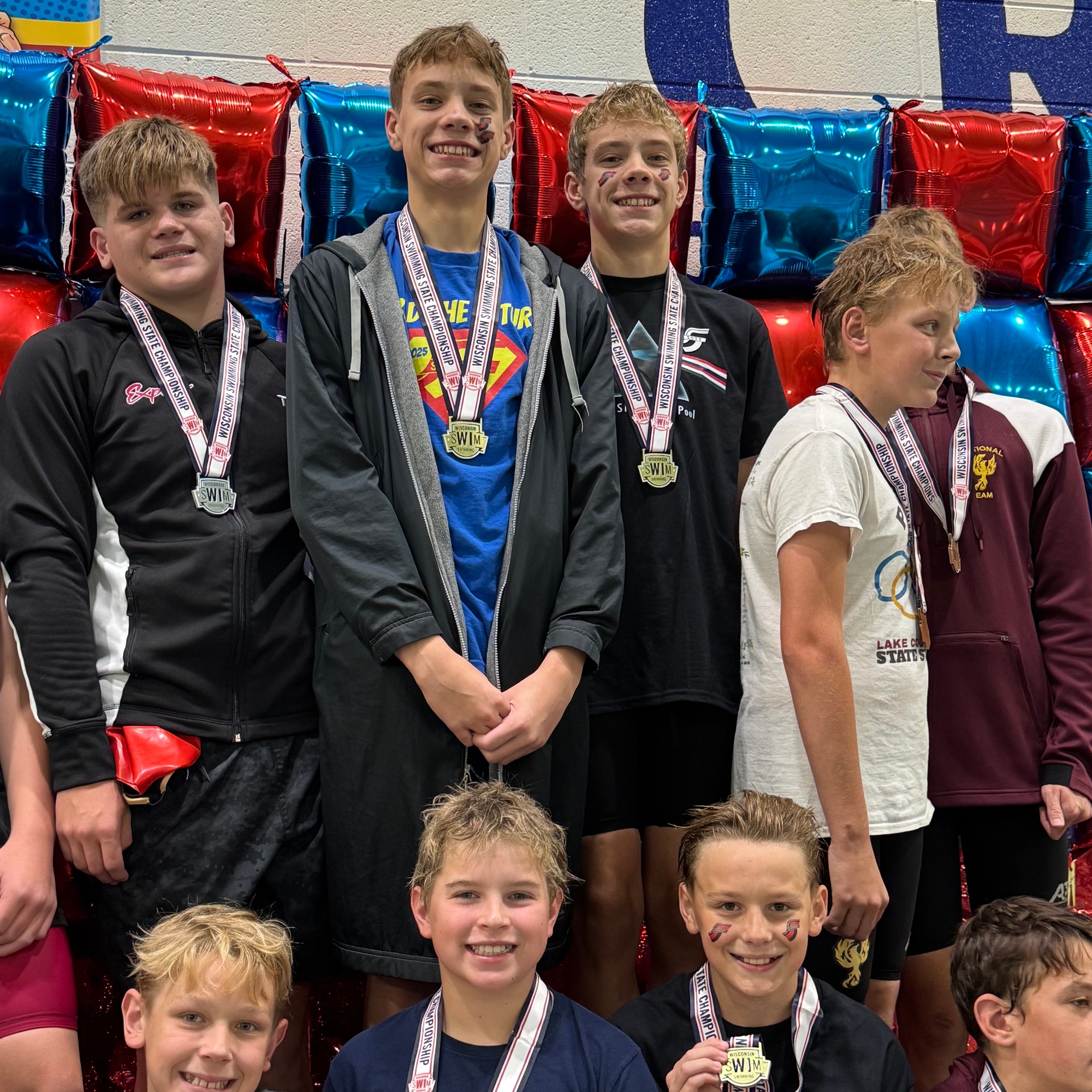 Adino Misany, Ethan Smith, Chase Komassa, Owen Smith - 11-12 boys 200 free relay (State Record)