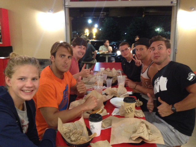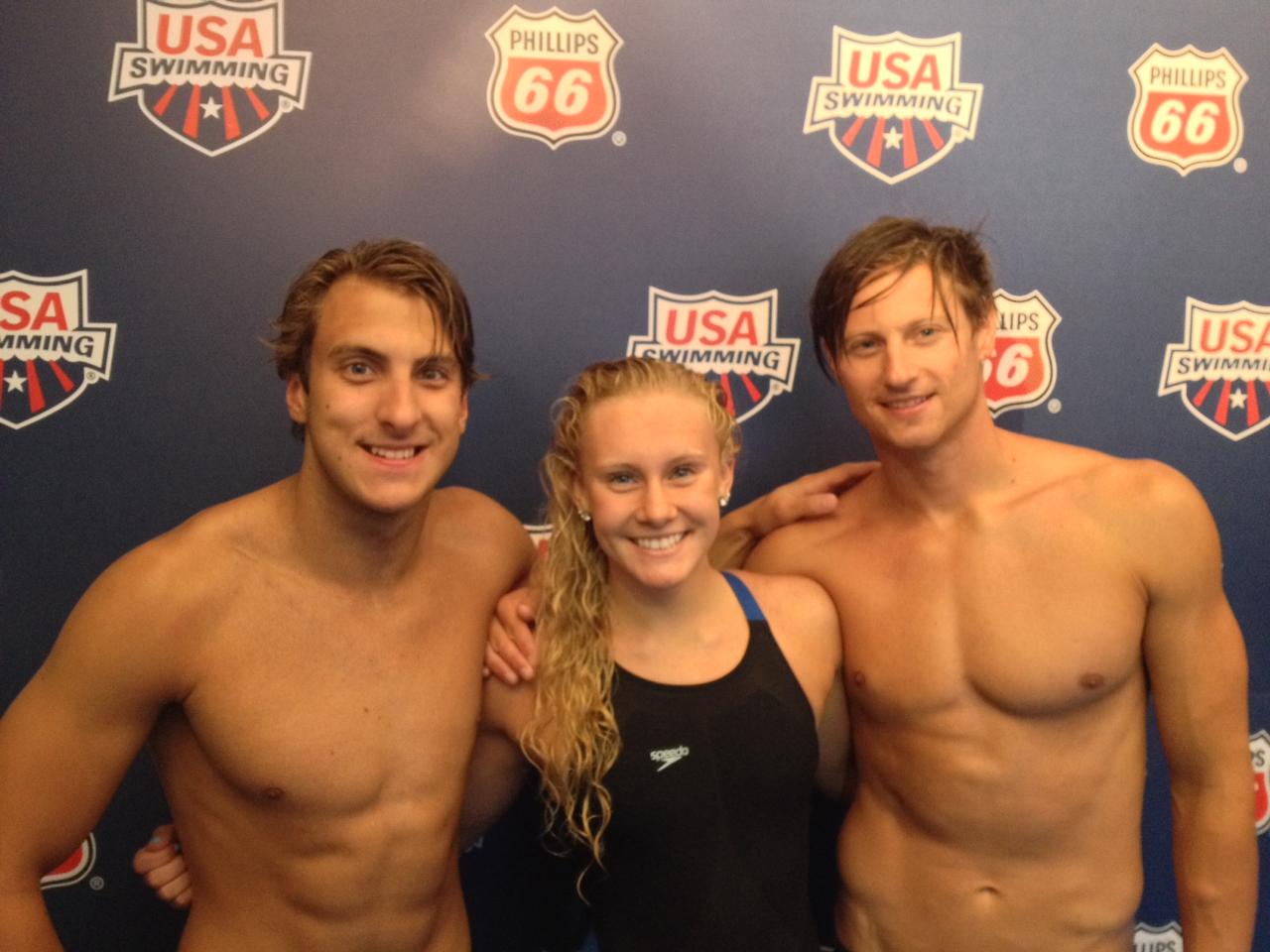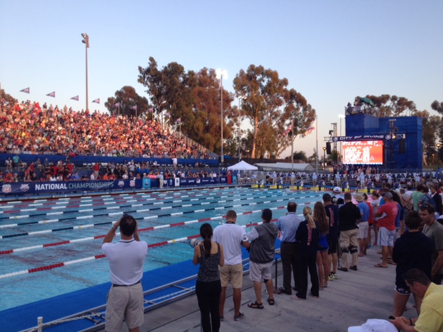 Another good session on Day 3 in Prelims. Nick was out very fast in the 100 Fly and suffered toward the end of the race and did not get a second swim (55.5). Ashlyn and Nick both are in the C Final of the 50 M Back and Adam is 7th in the 50 M Back. All three had some trouble with sun and hitting the lane line so tonight may be better!