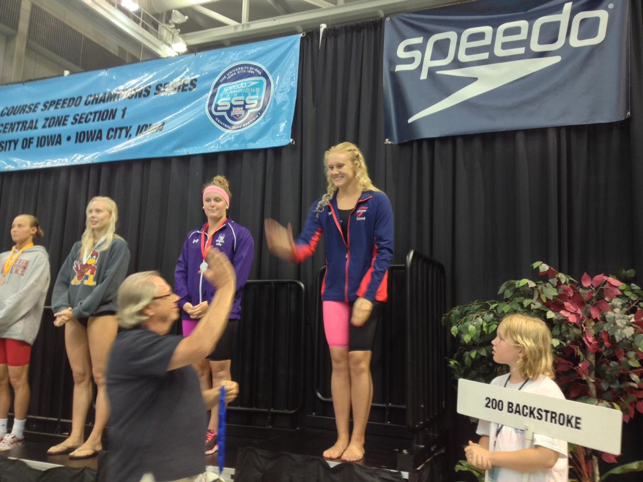 Good Day in Iowa! SSTY remains 4th in Combined scoring, the Men are now at 7th and the Women are holding steady at 2nd. Highlights from finals: The first event was the 200 M Back. Holly Stoll raced in the C final, Katie Taylor in the B final and Ashlyn won the A final with a new Team Record! Chandler Lewis maade the C final and Carl got second in the A final - near team record in prelims. Daniel Kudis put together a strong race in the 400...