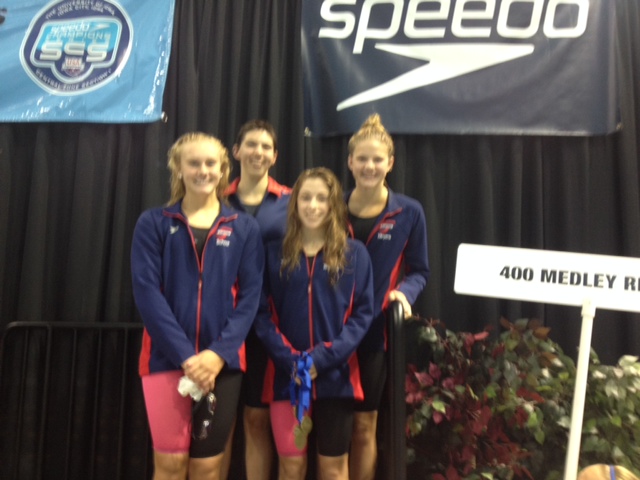 Schroeder finished well at the 2014 Speedo Section 1 Championship. The Women were 2nd, the Men 7th and overall Schroeder came 4th by just 4 points to Minnesota's team. The finale of the meet combined Schroeder's four fastest strokers in their respective events - Schroeder won the 4 x 100 Women's Medley Relay in a new club and state record. Ashlyn, Gwen , Hannah and Alex led from start to finish in a great performance. Earlier, we had great miles, sprints and 200 IMs. (some IMers were fortunate enough to...