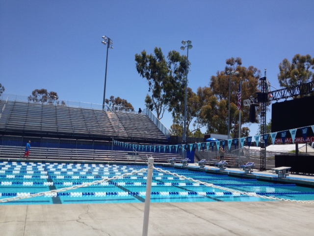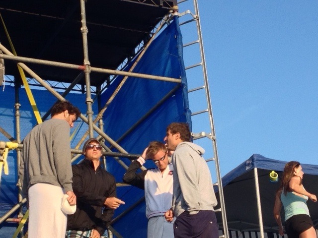 The men's 4 x 100 Free Relay finished 9th at the 2013 US Open yesterday evening with a time of 3:24.47. Carl Newenhouse led off with 51.94, Adam 50.76, Steve 50.86 and Mitchell anchored with 50.91. Today, Ellis and Adam race the 100 fly in what is a relatively light day of racing for the squad. (the quartet getting ready a trying to stay warm in the sun - it gets cold quickly)