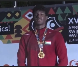 Ziyad Saleem won the first Gold Medal for Sudan at an African Championships. The competition is in Angola and the water is very warm at 89 degrees. Ziyad has the 50 and 100 back events remaining. The 50 Back should be around 1:30 PM CST today, Thursday, May 2 link to a live stream