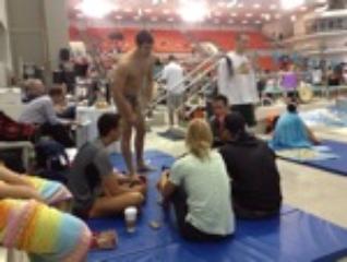 Steve and Mitchell both advanced to the B final of the Men's 50 Yd Freetyle at the AT&T Winter National Swimming Championships in Austin, Texas. Steve is unshaved but still managed to record 19.96. Both will race and may be seeded next to one another in the finals which are slated to go off at ournd 6:50 PM tonight. A lnk to the Meet page