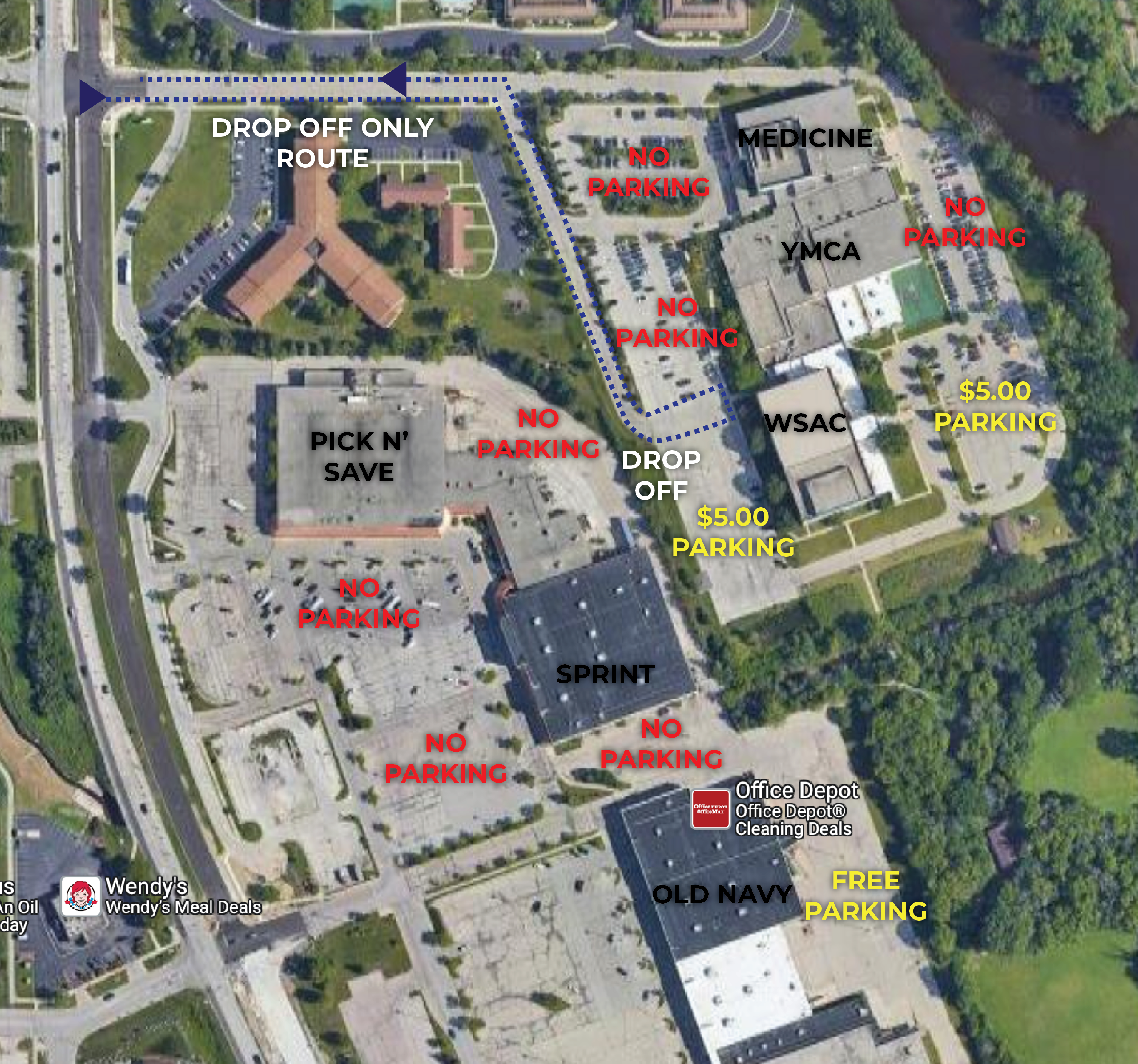 Parking in designated meet areas only - overflow parking behind Old Navy (ABSOLUTELY NO PARKING BEHIND PICK N SAVE)